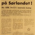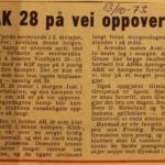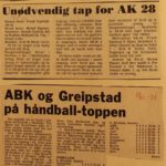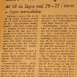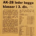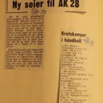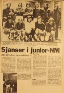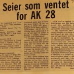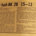 1974 Ole Terje Kristensen, Alf Yngve Bjørnstøl, Bjørn Birkeland og Frank Egeland var hovedansvarlige for at AK 28 slo Just 25-18. Legg merke til bokstavene som henger under resultatet. De ble brukt til å bokstavere lagenes navn